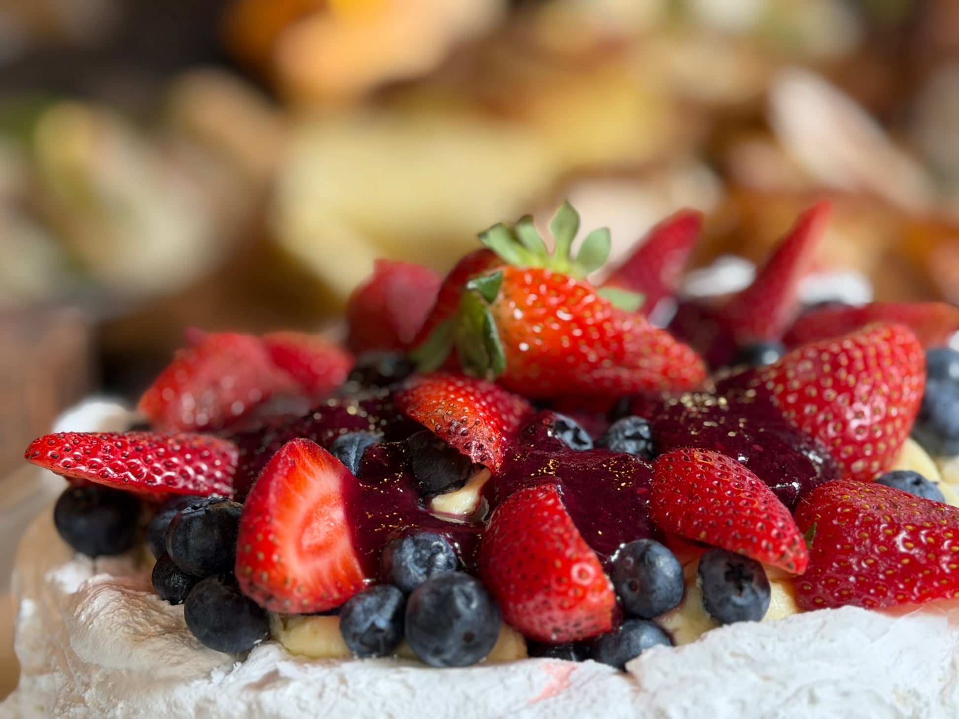 Merengue crocante con crema y frutos rojos